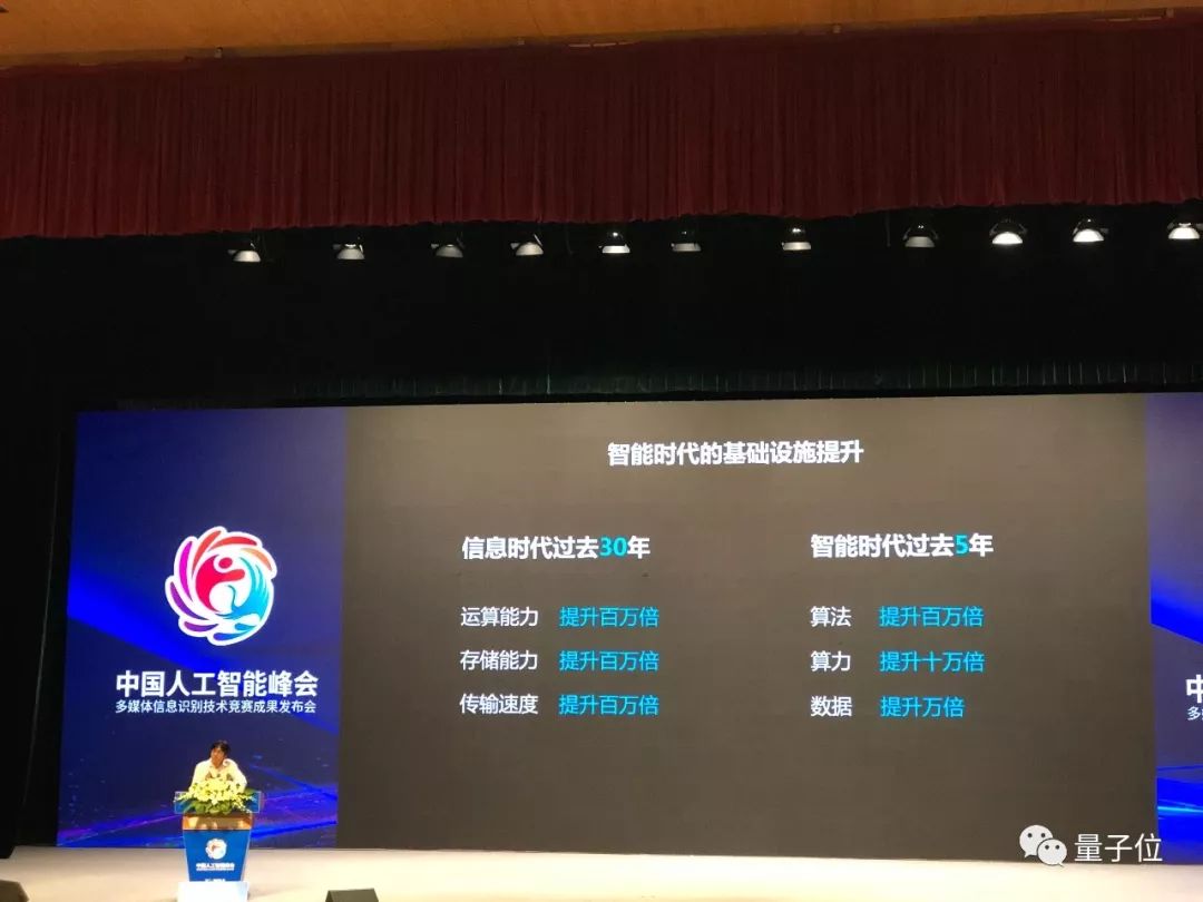 过去5年内,算法的水平提升了100万倍。比如人脸识别技术,在机器超过人类的基础上,错误率又下降了100万,可以从1000万人中识别一个人,甚至从1亿、10亿、20亿人中识别一个人。