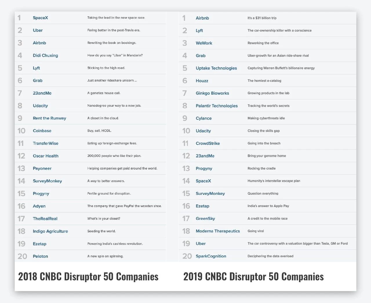 “Disruptor 50”榜单完全基于CNBC专有标准进行综合考量和排名,是科创界和财经界的重要风向标。可扩展性/规模化成长性和用户增长是本届评选最重要的标准。今年的50家公司创纪录地从1200家公司中甄选而出,CNBC认为他们将颠覆价值数十亿美元的产业,并认为美国的公司正在开始关注中国的创新。