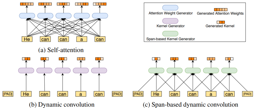 基于这一观察,依图提出了基于跨度的动态卷积,通过接收当前词和前后的一些词作为输入,来产生卷积核进行动态卷积,这在减少了自注意力机制冗余的同时,也很好地考虑到了语境和对应卷积核的多样性。
