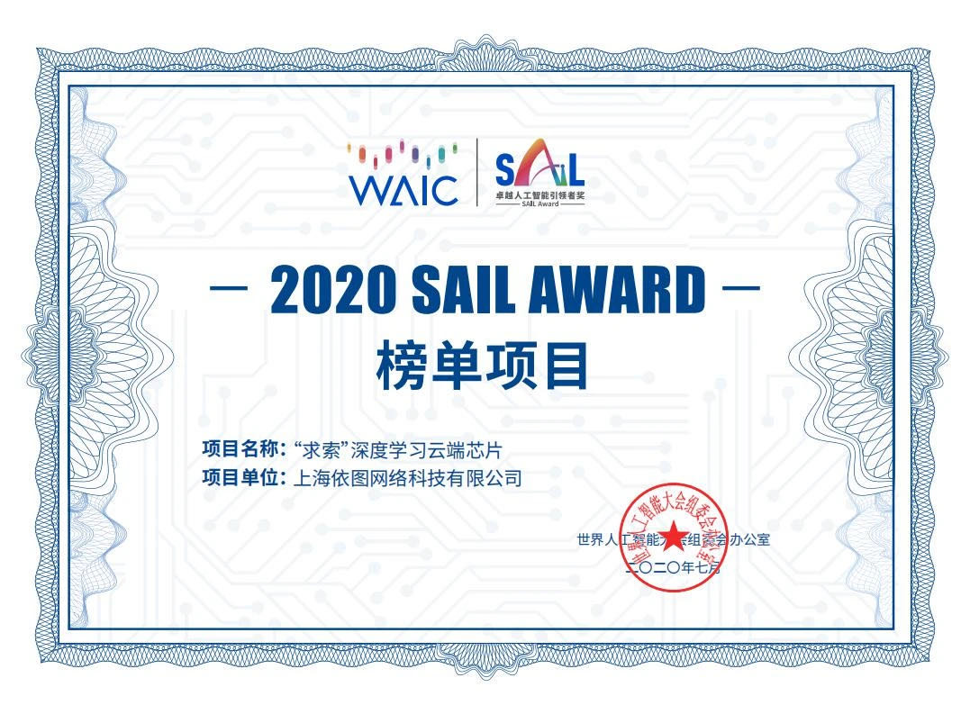 作为上海人工智能领域打通产、学、研、用、融各要素的创新亮点,卓越人工智能引领者(简称“SAIL奖”)在设立三年来一直为百舸相争。在今年的大会上,依图自研AI芯片求索从800多个项目中脱颖而出,被评为SAIL奖榜单项目。